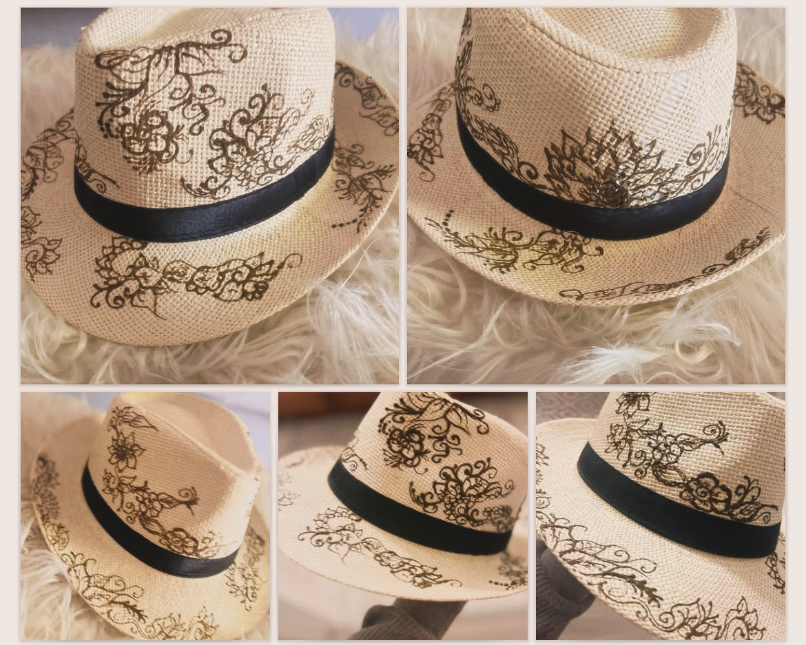 I’m accepting orders for these henna adorned big brim Panama style hats !!