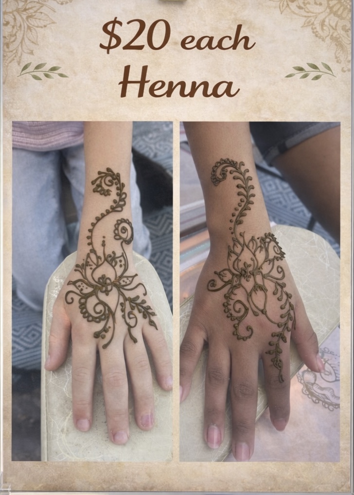 Henna Classes at your place – 5 person minimum $35 per person – materials included with instruction . 2 hour class time.